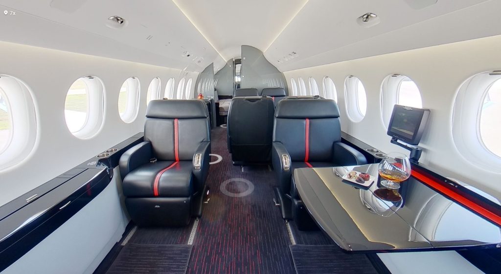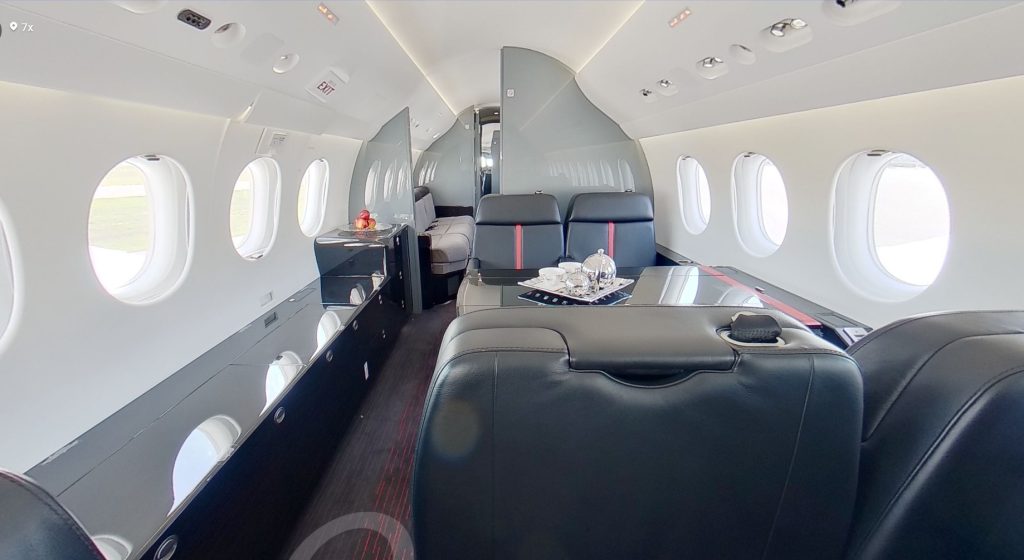 La cabine généreuse du Falcon 7X offre un volume intérieur de 44 mètres cubes, permettant aux passagers de se déplacer librement et de travailler confortablement en vol.